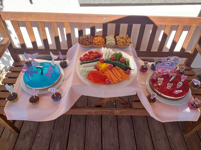 Danke für die großartige Verpflegung der 12 Kinder! Es hat an nichts gefehlt - Cocktails und kalter Kaba, Dino- und Blumenwiese- Kuchen, Gemüse, Hot Dogs und Schokofondue mit Obst... Danke Christine, du warst spitze!