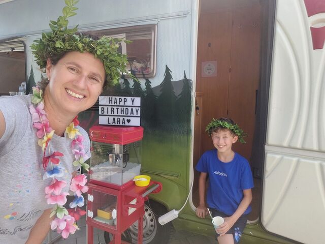 "Besonderer Dank geht raus an das Camper-Café Glückskindl! Es war uns ein inneres Blumenpflücken! ...es war uns eine besondere Freude, dich bei uns zu haben!"